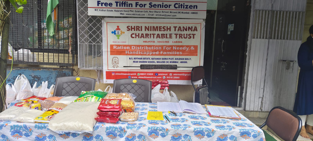 Shri Nimesh Tanna Charitable Trust donates ration every month to Manav Seva Tirth at Vele, Chopada in Jalgaon Taluka